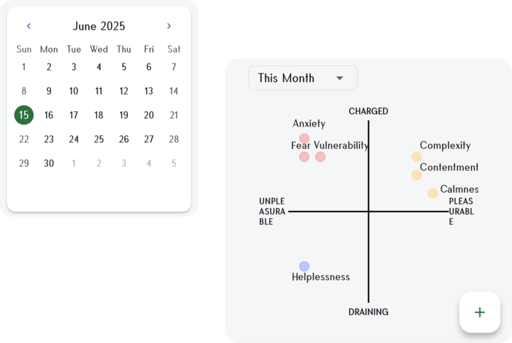 Reflect with Alfie daily to build your emotion map and calendar. Each emotion will be mapped and you can revisit previous Emograms through your calendar.